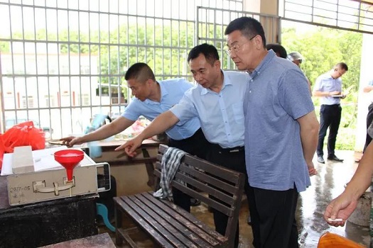姜宏濤(右一)在收膠站實地調(diào)研。