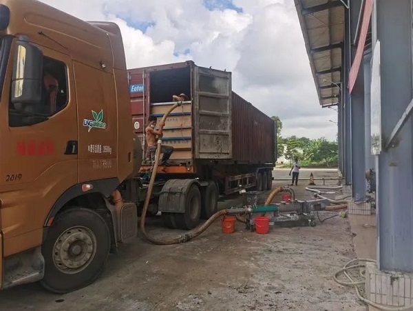 膠農正在卸膠水。