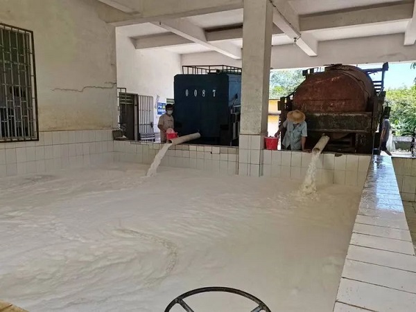 8月27日,是疫情發(fā)生以來西培分公司橡膠復(fù)割復(fù)產(chǎn)的第一天,符振瑤帶領(lǐng)西華派駐組全體員工一邊做好疫情防控工作,一邊狠抓干膠生產(chǎn)不放松。當日西華派駐組共完成干膠生產(chǎn)18.6噸。