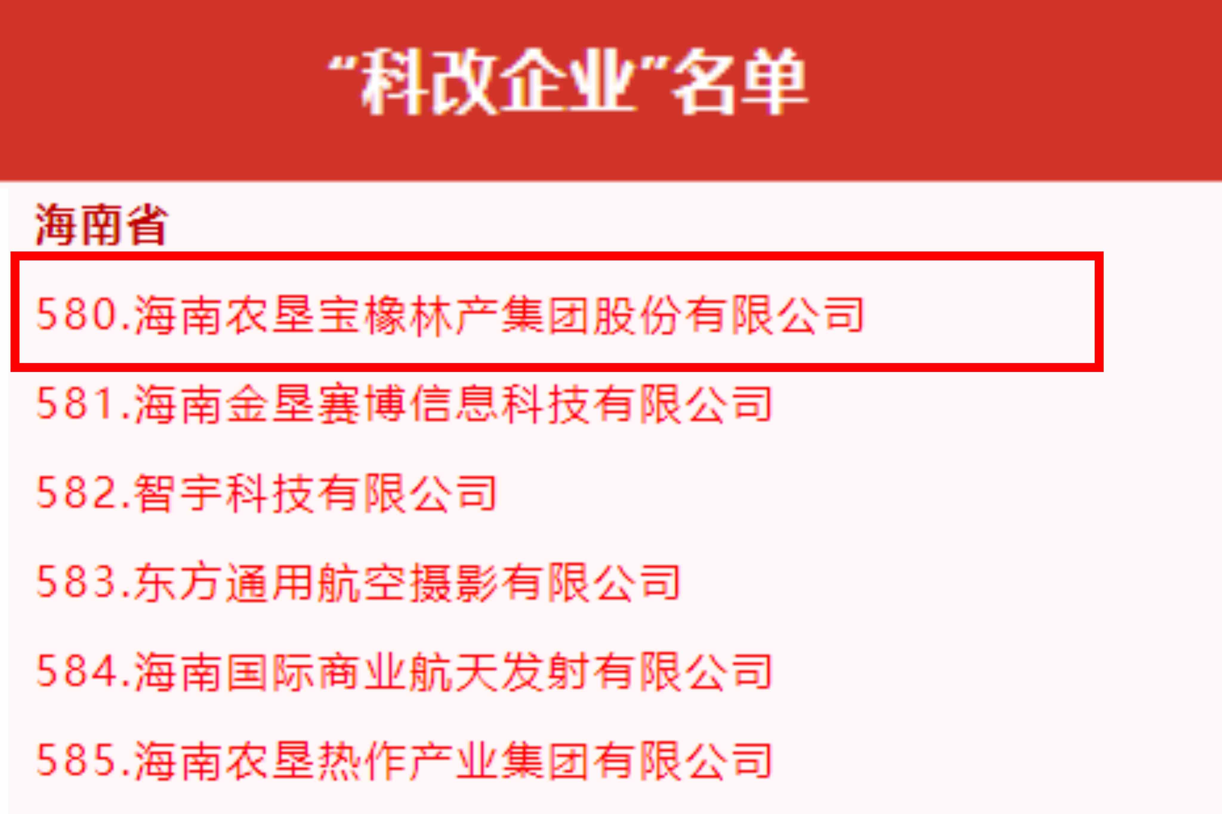 日前,國務院國資委網站公布最新“科改企業”名單,海南省共有6家企業上榜。其中,海南橡膠下屬子公司海南農墾寶橡林產集團股份有限公司、海南金墾賽博信息科技有限公司、海南農墾熱作產業集團有限公司等3家海墾企業入選名單。