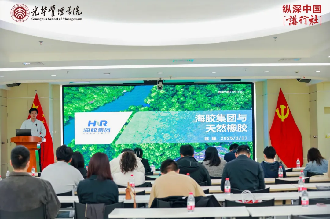 1月10日,北京大學光華管理學院《縱深中國》青年研學團到海南橡膠參訪交流。